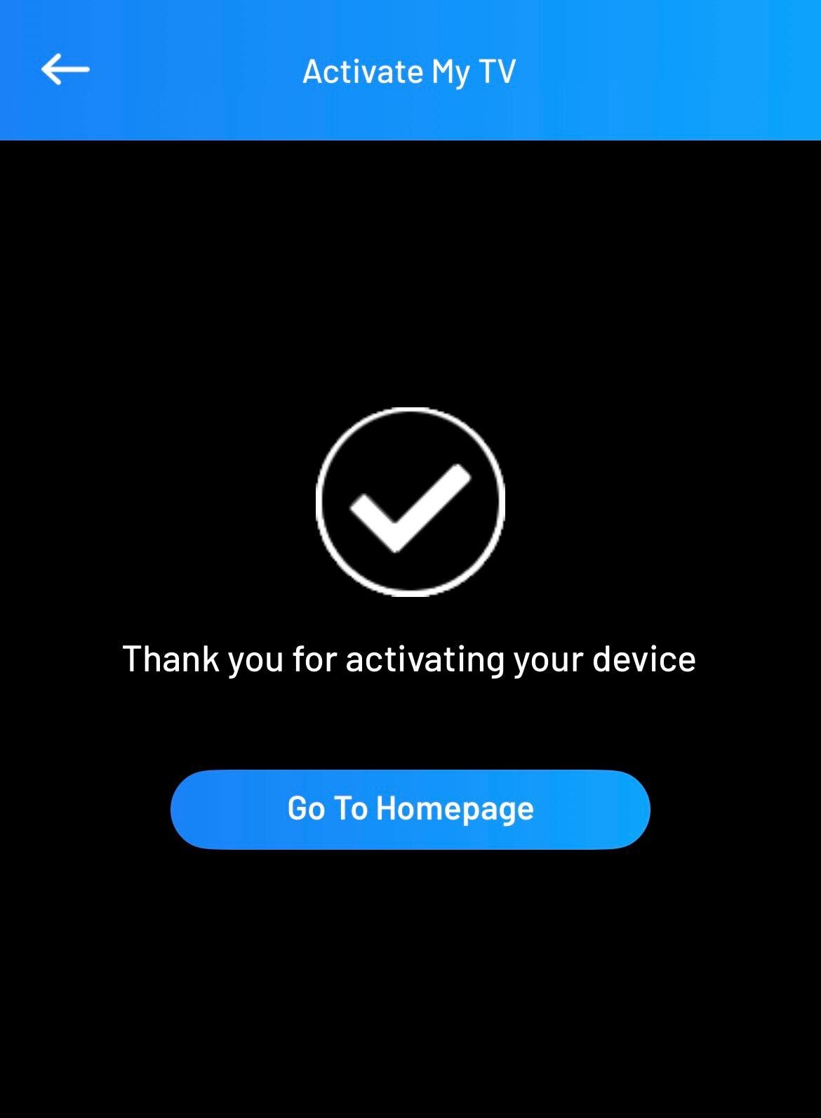 4. You'll see an activation screen on your mobile device. Enter the 5 character code displayed on your smart TV.