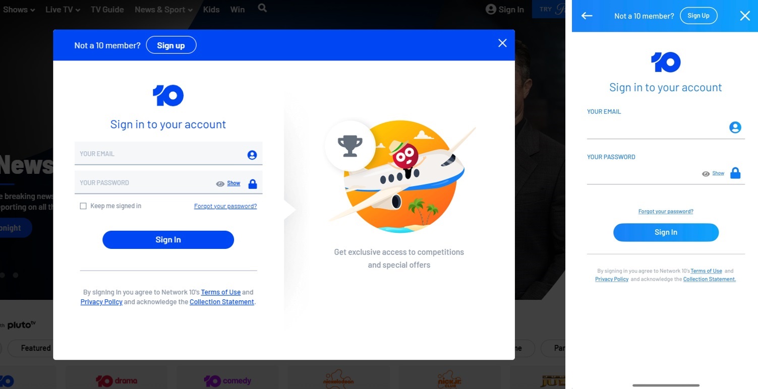Please note, if you are not signed into your 10 account when accessing 'Activate my TV' you will be prompted with the sign in screen and redirected to the activate page once sign in is successful.