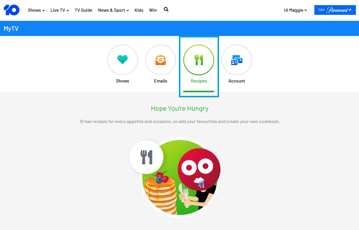 - A screenshot of the Recipes page.